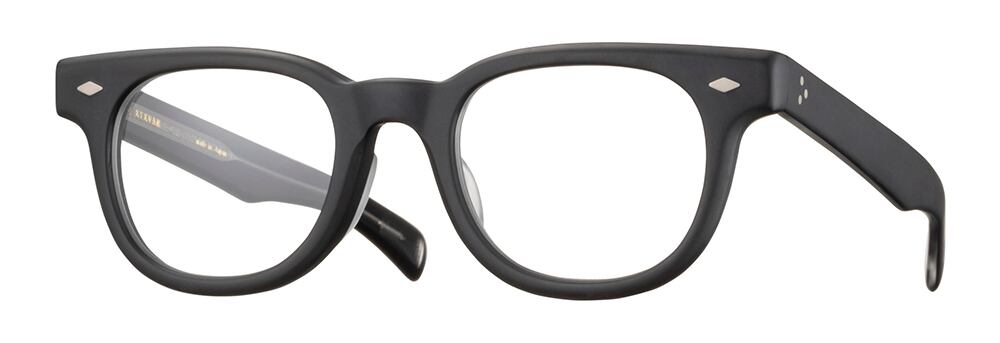1960年代にJAZZミュージシャン、YUSEF LATEEFが愛用していたフレンチヴィンテージとアメリカンヴィンテージを融合したかのような名作フレームが着想源。テンプルはオリジナルデザインを部分的に抑揚ある形状にリデザインし、フロントにはオリジナルのダイヤ型飾り、丁番にはデザインとしても美しい置き丁番を採用した。ヴィンテージを出発点としながらも現代的な解釈を加えることによって、EYEVANが今最も美しいと考えるウェリントンデザインとなった。