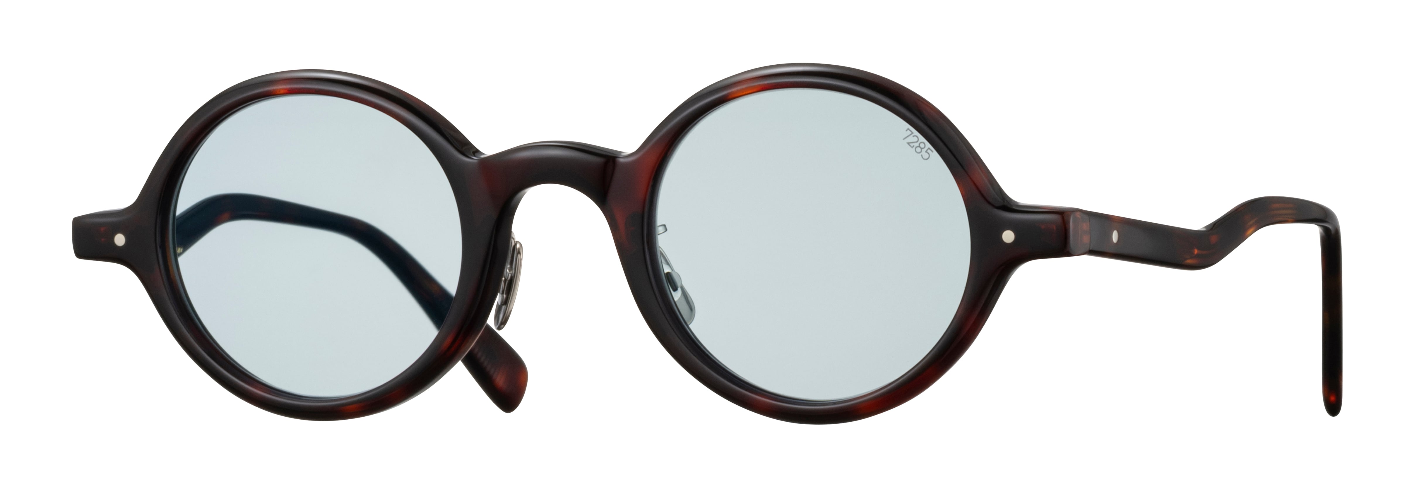 喜劇役者ハロルド・ロイドが 1910 年代頃から掛けていた眼鏡からインスパイアされたモデル。 ブリッジが高く、智が低いというそのアイコニックな意匠ををさらに誇張させたデザイン。 テンプルは合口部の低い位置から後方部に向かい徐々に上がっていくという 70 年代に製造された ラグジュアリーブランドのフォルムをサンプリングした。 異なる時代のヴィンテージを組み合わせ、新しいプロダクトを創造するという 7285 のものづくりの手法の一つが具現化されたモデル。